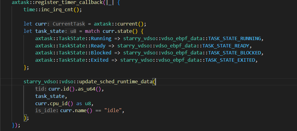 api/src/lib.rs处增加 vdso 数据页的更新逻辑,在register_timer_callback时同步更新 vvar 中的任务快照,确保 fast path 始终读取到最新状态